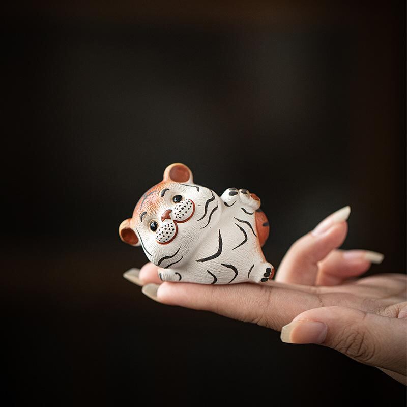 茶寵 紫砂 虎 置物 精巧 ユニーク デザイン 金運 招福 縁起物 ラッキーアイテム オブジェ 茶器 茶道具 茶卓 インテリア 飾り 中式スタイル リビング 書斎 デスク 玄関飾り ギフト 贈り物