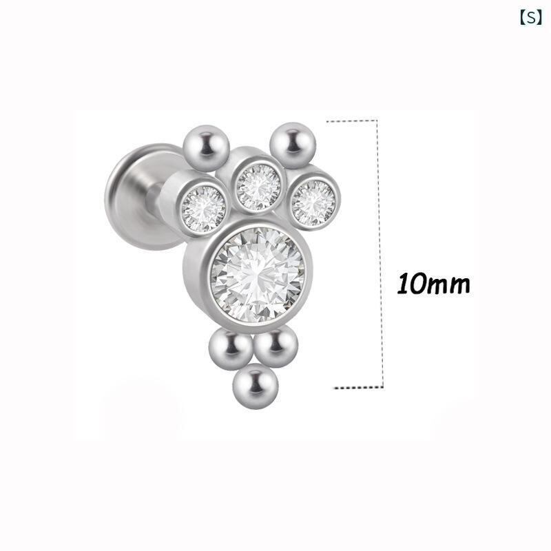 ピアス レディース チタン鋼 316Lステンレス CZジルコニア 三角 リップモチーフ クリスタル クラスター 軟骨ピアス 耳たぶ 低アレルギー