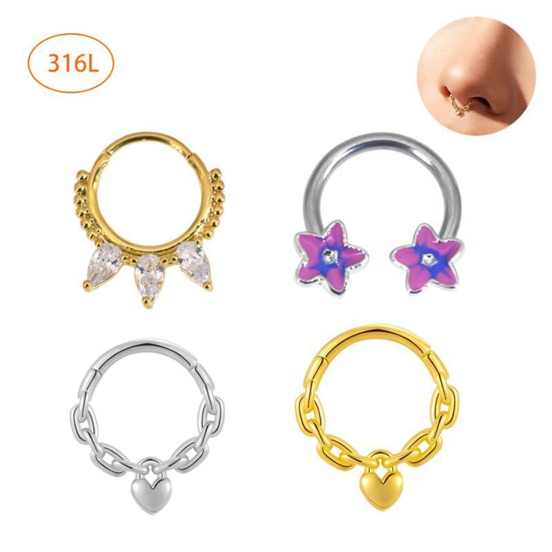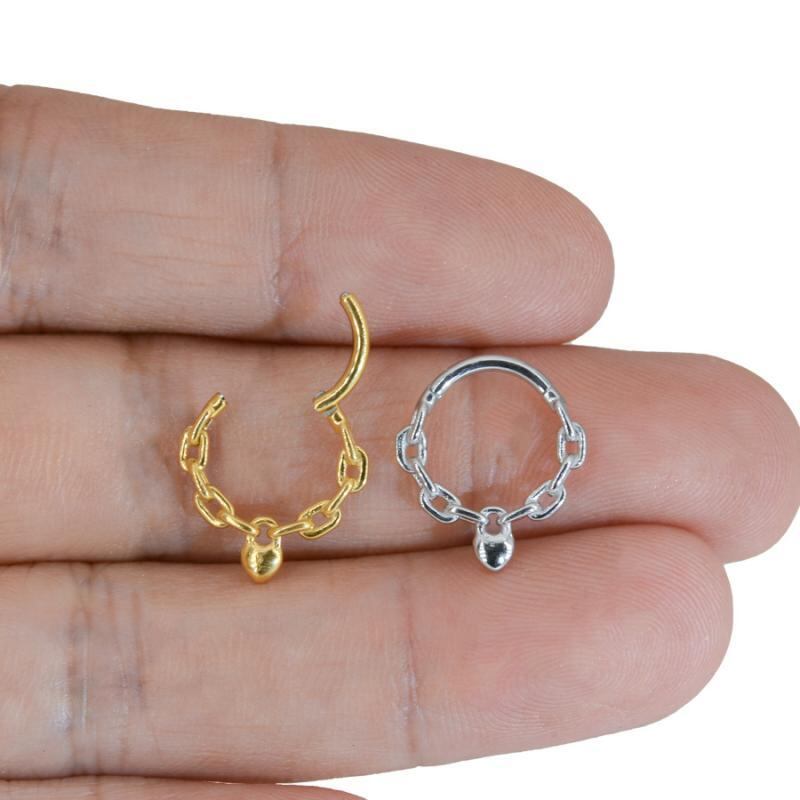 ボディピアス 男女兼用 ステンレス ハートモチーフ チェーンデザイン 鼻ピアス ノーズリング 耳ピアス イヤリング 内径8mm 10mm 太さ1.2mm シルバー ゴールド