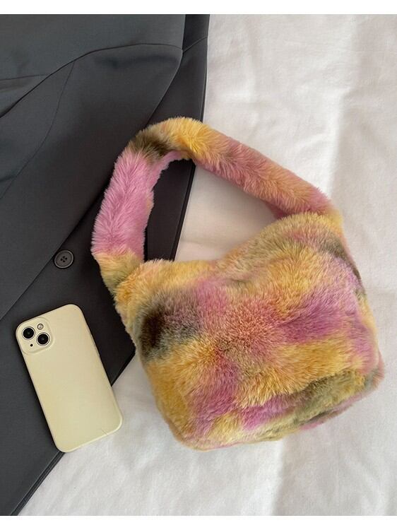バッグ レディース 冬 ファー もこもこ バケットバッグ ショルダーバッグ バイカラー 大容量 通勤 デイリーユース 脇下 肩掛け 手提げ 円筒形 ソフト素材