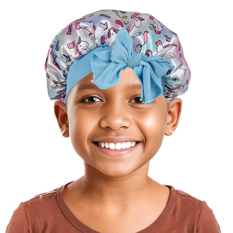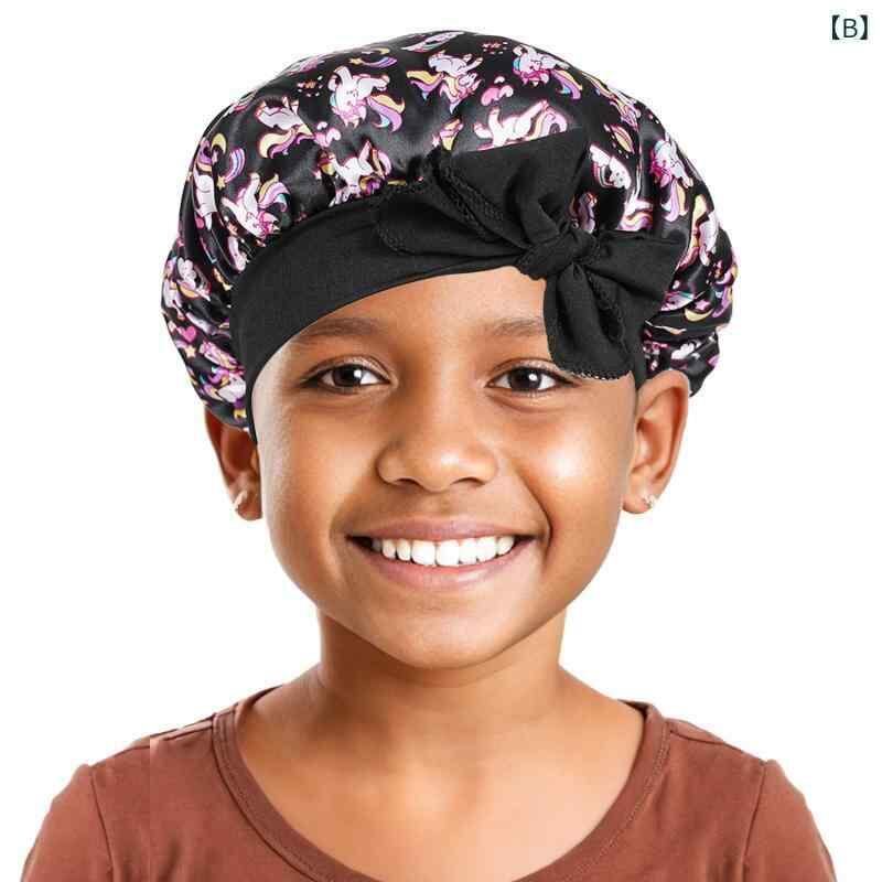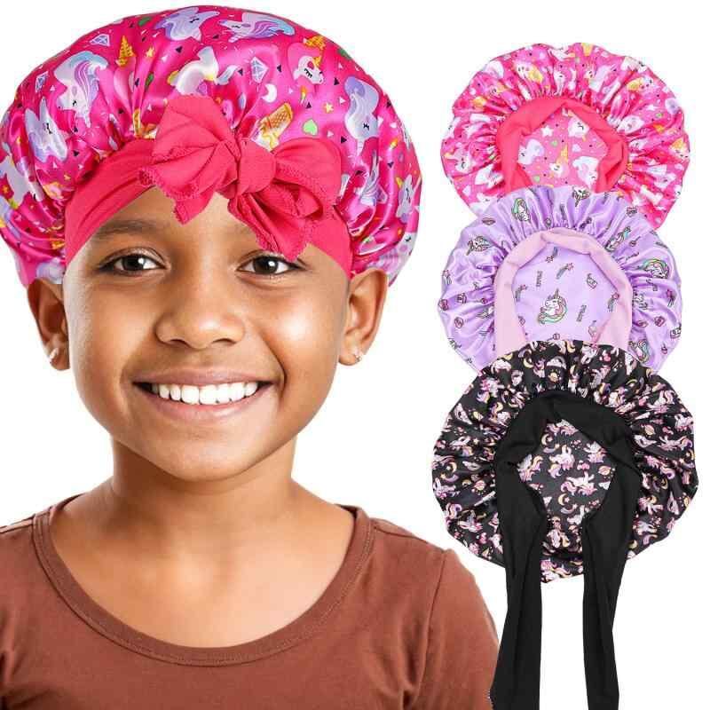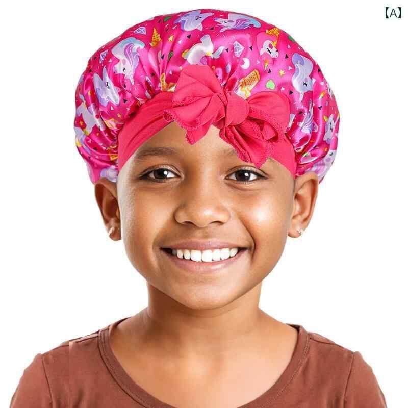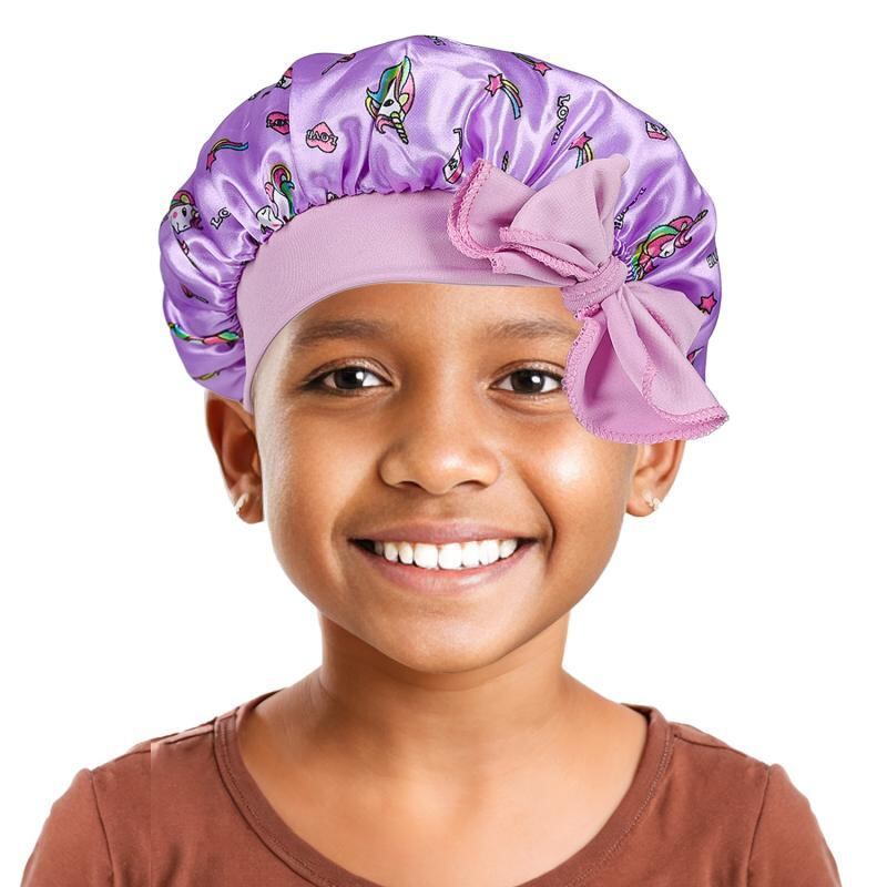 スリープキャップ キッズ 女の子 子供用 ポリエステルサテン リボン レインボー ユニコーン柄 かわいい ナイトキャップ 帽子 寝癖防止 髪の毛保護 ヘアケア 通気性 保湿 オールシーズン プリンセス ゆめかわ