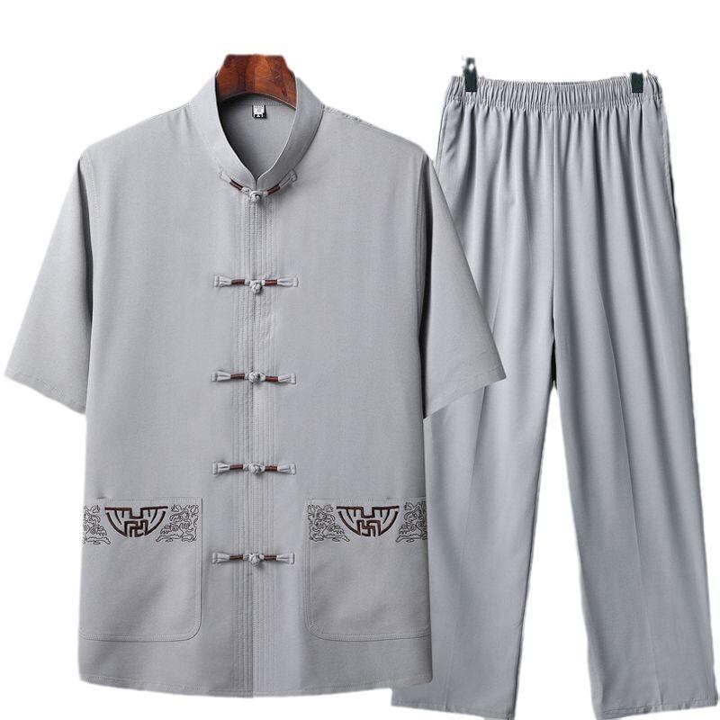 セットアップ メンズ シニア 唐装 中国風 半袖 薄手 カジュアル 上下セット 太極拳ウェア 武術服 男性用 おじいちゃん お父さん向け ゆったり 軽量 普段使い リラックスウェア ポリエステル混紡