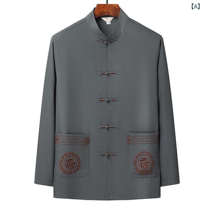 セットアップ メンズ 男性用 中高齢者向け 接触冷感 長袖 太極拳ウェア ポリエステル混紡 レトロ 中国服 カジュアル シニア 部屋着 普段使い ベーシックカラー
