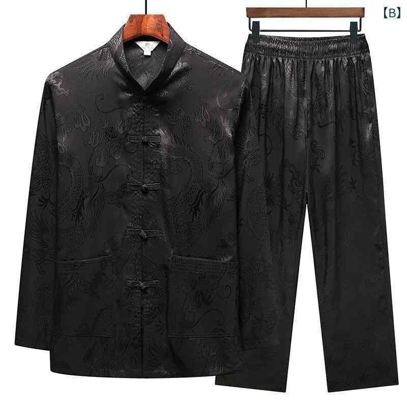 太極拳ウェア 男性用 中高齢者向け 長袖 セットアップ 中国風 復古調 唐装スタイル 漢服スタイル 接触冷感 ポリエステル素材 リラックスウェア 部屋着 普段着