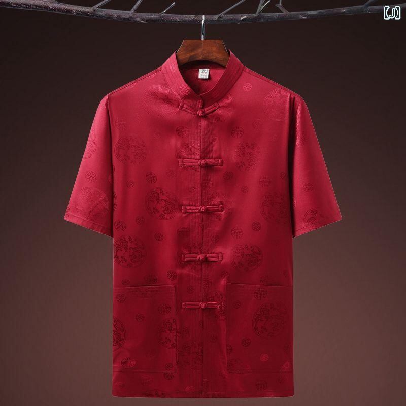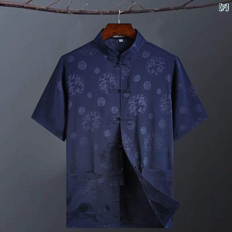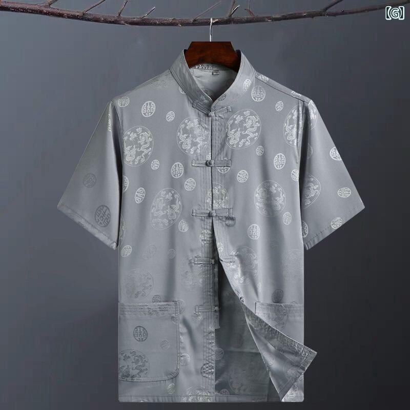 シャツ 男性用 唐装 半袖 接触冷感 中国風 シニア 中高年向け 盤ボタン ビッグサイズ ゆったり 普段使い リラックスウェア 父の日 プレゼント ポリエステル 吸湿速乾 通気性 軽量