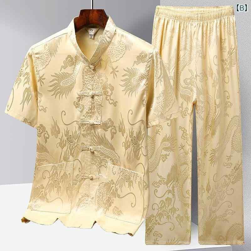 セットアップ メンズ シニア 中高年 半袖シャツ 上下セット 接触冷感 新中華風 太極拳ウェア 朝練 普段使い カジュアル リラックスウェア ポリエステル素材 吸湿速乾 通気性 ポケット付き 夏用