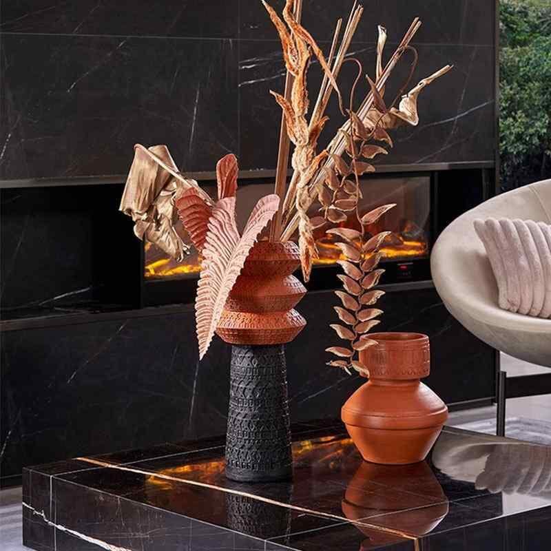 花瓶 侘寂風 レトロ ミックススタイル リビング 玄関 フラワーベース アロマディフューザー 収納 オブジェ インテリア雑貨 樹脂製 モダン シンプル 卓上飾り モノトーン