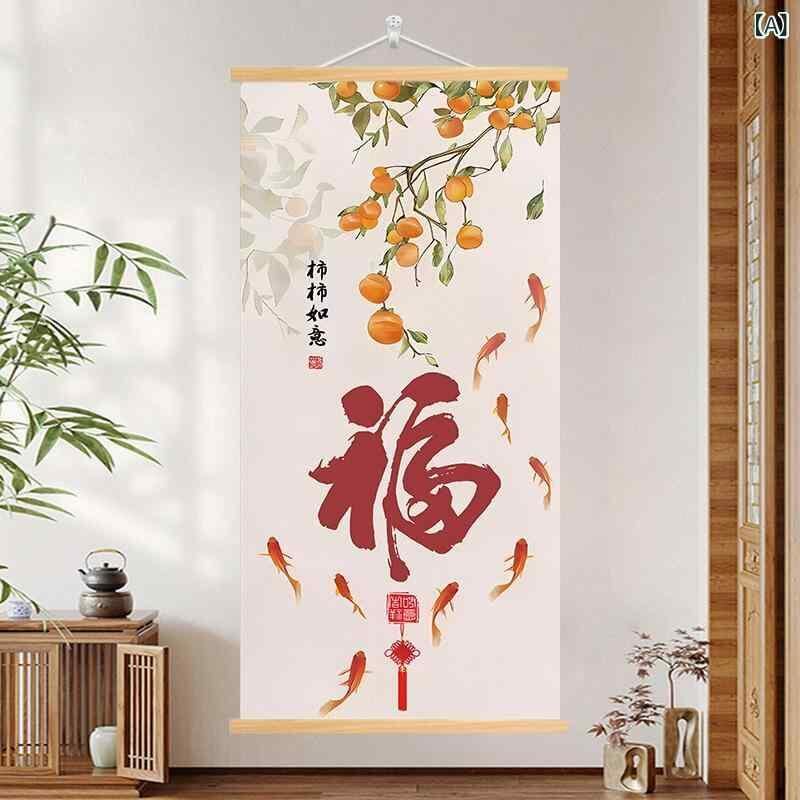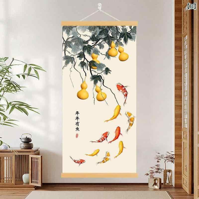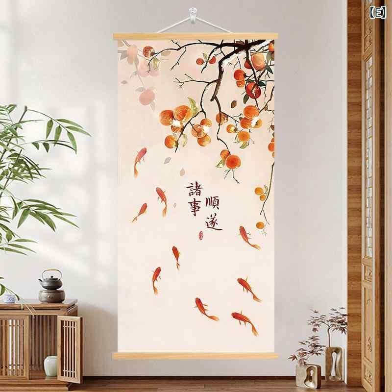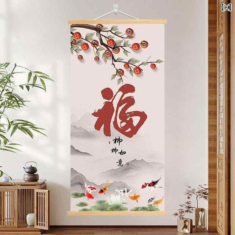 装飾画 玄関 リビング 東洋風 福文字 九魚図 柿柄 縁起物 ウォールアート 穴開け不要 壁掛け キャンバスアート モダン シンプル アルミフレーム