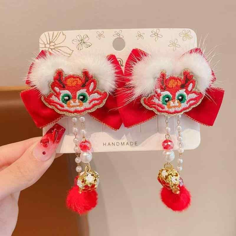 髪飾り 女の子 キッズ ヘアクリップ ヘアアクセサリー 古風 漢服 中国風 中華風 花 蝶々結び リボン タッセル 垂れ飾り レッド 布製 お正月 新年 雛祭り 七五三 発表会 イベント 写真撮影 普段使い かわいい 華やか 上品 和装 浴衣 | cybercart
