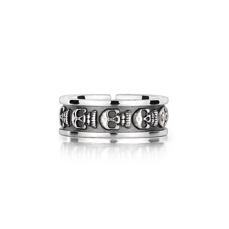 リング メンズ 男女兼用 欧米 レトロ スカル タイシルバー 開口式 サイズ調整可能 アクセサリー 個性的 ペアリング 指輪 おしゃれ