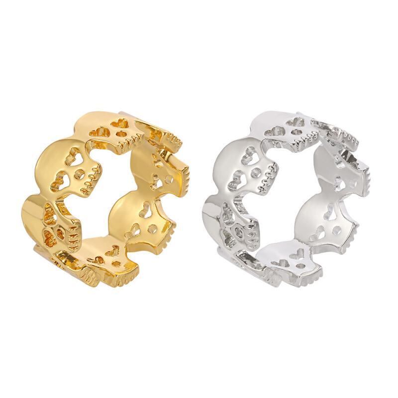 リング ユニセックス スカル オープンリング フリーサイズ 調節可能 ヒップホップ カップル ペアリング 関節リング ファランジリング 金属製 ファッションアクセサリー ゴールド シルバーカラー カジュアル ストリート 個性派