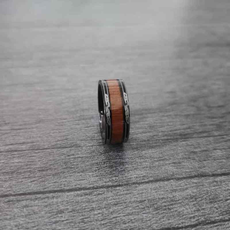 リング メンズ レディース ユニセックス ステンレス製 フェニックス模様 木目調デザイン ブラック 幾何学模様 ラインデザイン 個性的 インフルエンサー ファッションリング 普段使い デイリーユース スタイリッシュ