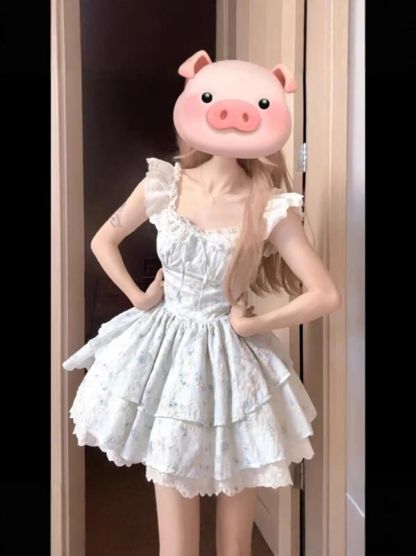 ワンピース レディース 夏 フェミニン プリンセス風 小花柄 フリル袖 ウエストゴム ティアードスカート ショート丈 ふんわり フレア スクエアネック ピンク