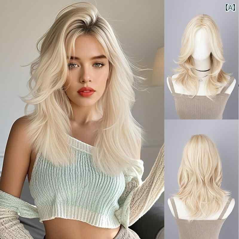 ウィッグ レディース ショートヘア プラチナブロンド ショートカール ウェーブ 若見え シースルーバング 高温耐熱ファイバー製 軽量 薄手 夏用 普段使い ナチュラル イメチェン かつら