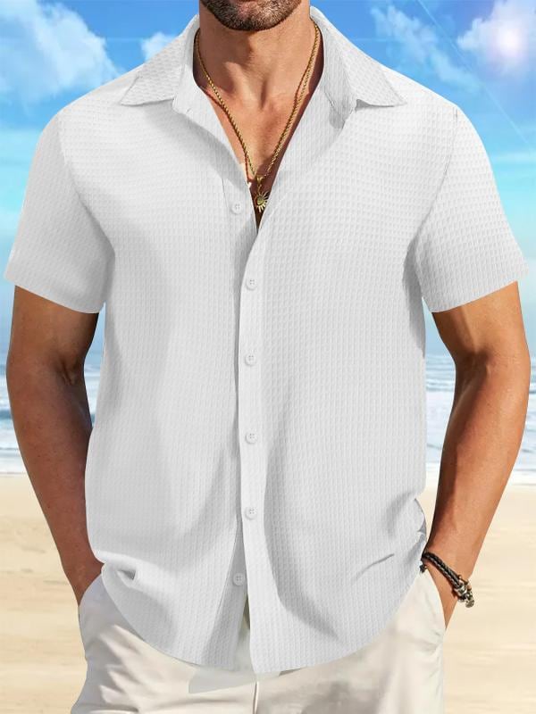 シャツ メンズ 男性用 半袖 チェック柄 ジャカード織り ナイロン 通気性 快適 スリムフィット 細身 ビジネス 通勤 オフィスカジュアル 襟付き 夏用 普段使い