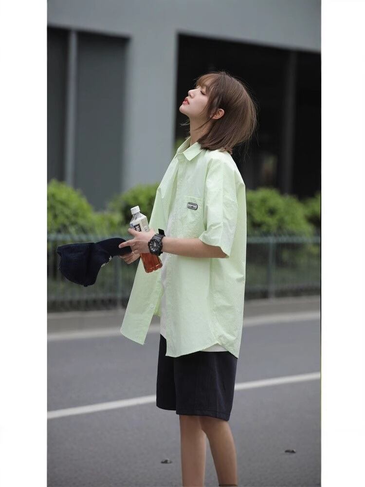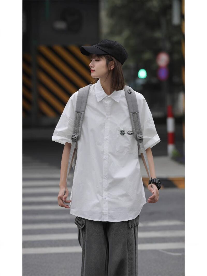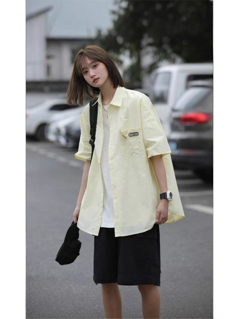 ・カテゴリ: シャツ・スタイル: 日系カジュアル・主な素材: ポリエステル96%以上・生地密度: 20番手・厚さ: 薄手・ネックライン: 襟付き・袖丈: 半袖・シルエット: ルーズフィット・柄: 無地・デザイン: カーディガン・デザインディテール: ボタン・着用シーン: カジュアル・性別: 男性・対象年齢: 18~24歳・誤差範囲: 約1〜3cm・カラー展開: ホワイト、ブラック、ミントグリーン、ピンク、ライトイエロー・サイズ展開: M、L、XL、XXL、XXXL