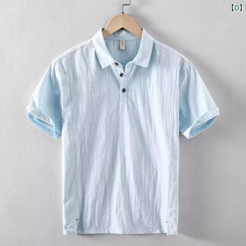 シャツ メンズ 男性用 半袖 綿麻 リネン 亜麻 薄手 無地 襟付き 中国風 チャイナ風 通気性 涼しい デイリーユース 普段使い カジュアル トップス ホワイト ライトグレー ダークブルー ライトブルー