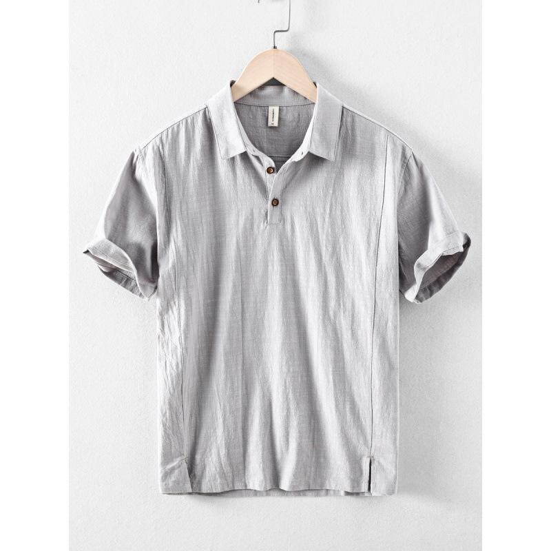 ・カテゴリ: シャツ・スタイル: チャイニーズスタイル・性別: 男性・対象: 成人・主な素材: 綿71~80%、麻・機能: 透湿性・糸番手: 20番手・厚さ: 薄手・デザイン: プルオーバー・フィット: レギュラーフィット・ネックライン: 襟付き・袖丈: 半袖・柄: 無地・デザイン詳細: ステッチ・加工: ウォッシュ加工・シーン: 日常・カラー展開: ホワイト、ライトグレー、ダークブルー、ライトブルー・サイズ展開: S、M、L、XL、XXL、XXXL、4XL、5XL