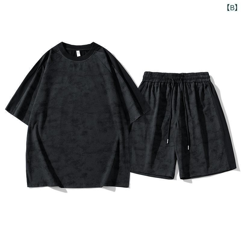スポーツウェア メンズ 半袖Tシャツ ハーフパンツ 上下セット 接触冷感 吸湿速乾 夏物 運動 トレーニング 普段着 部屋着 カジュアル リラックスウェア グレージュ ブラック ネイビー