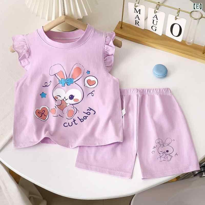 キッズ 女の子 フリル袖トップス ショートパンツ 上下セット 夏 薄手 コットン 綿100% 柔らかい 肌に優しい 涼しい 韓国ファッション 幼児 ベビー服 80cm 90cm 100cm カジュアル 子供服