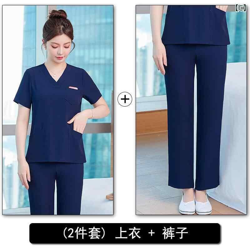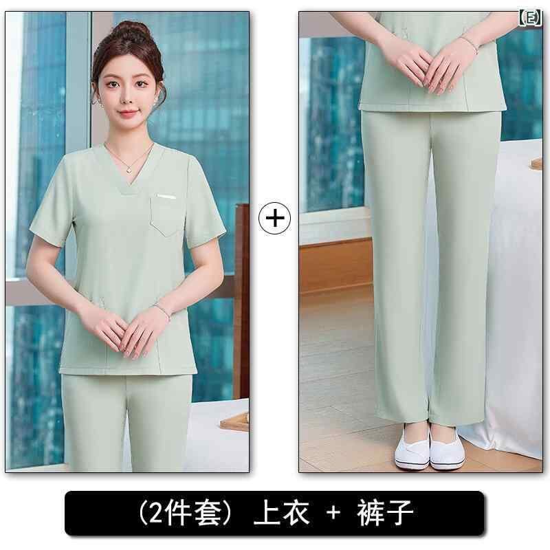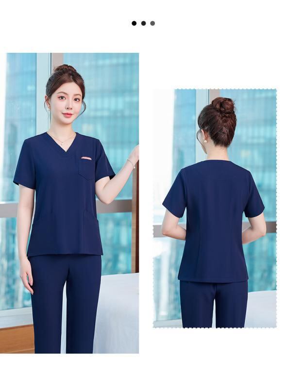 ユニフォーム レディース 高級感 美容院 エステサロン スパ マッサージ 施術服 半袖 上下セット 作業服 制服 ポリエステル 形態安定 しわになりにくい 上品 エレガント 青 緑 ブルー系 グリーン系