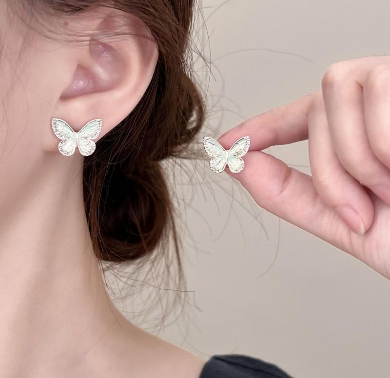 ピアス レディース スタッドピアス 小粒ジルコニア ミントグリーン エナメル加工 シルバーポスト 蝶々 バタフライ サマー シンプル スイート