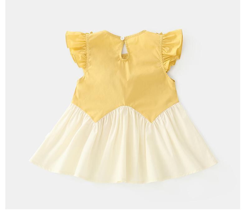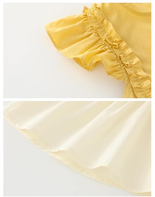 ワンピース 女の子 ベビー キッズ 薄手 コットン 綿100% 普段使い お出かけ 軽量 肌触り良い ふんわり プリンセス ショート丈 フレア Aライン 夏服 イエロー グリーン