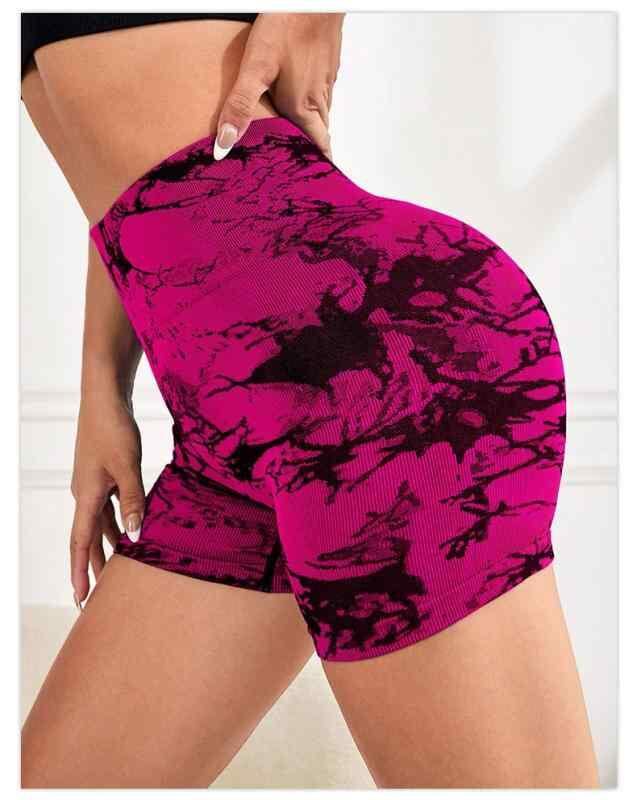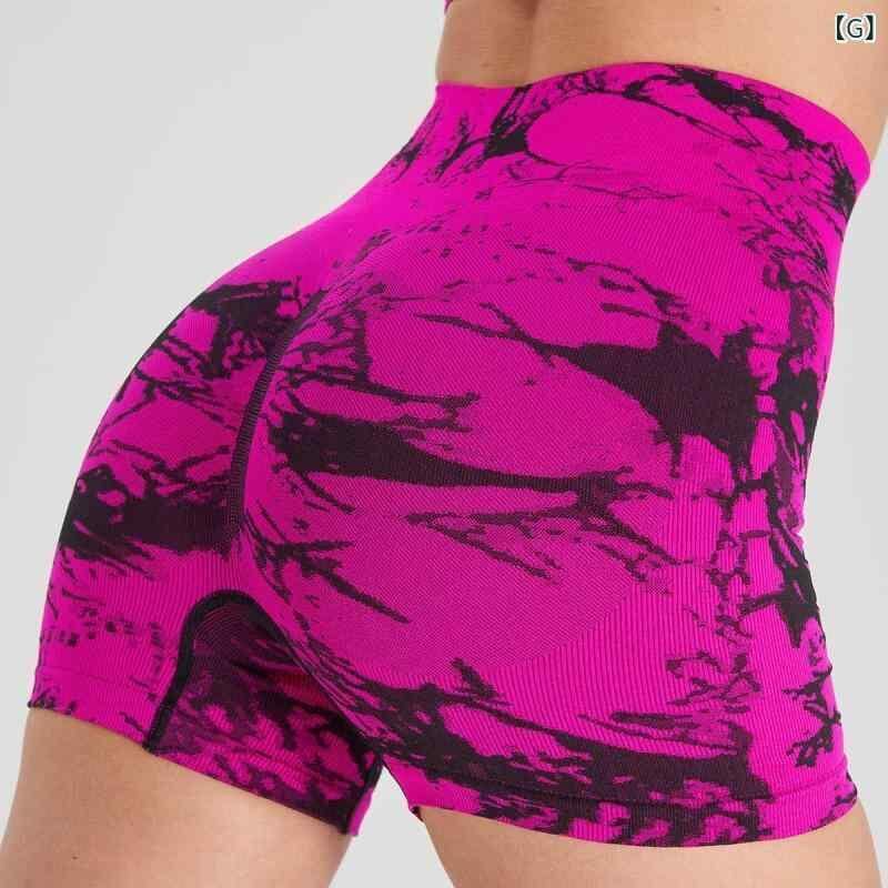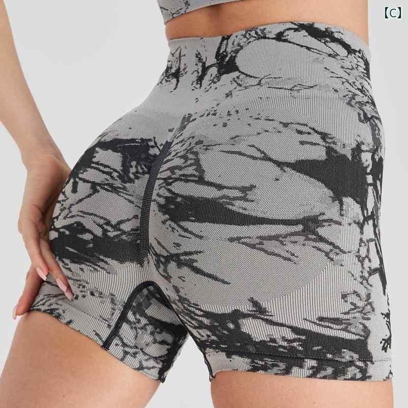 ヨガ ショートパンツ レディース ハイウエスト お腹引き締め タイト コンプレッション フィットネス ランニング トレーニング ワークアウト 吸湿速乾 普段使い スポーツ ナイロン スパンデックス素材 タイダイ柄 ジャカード織り ボトムス