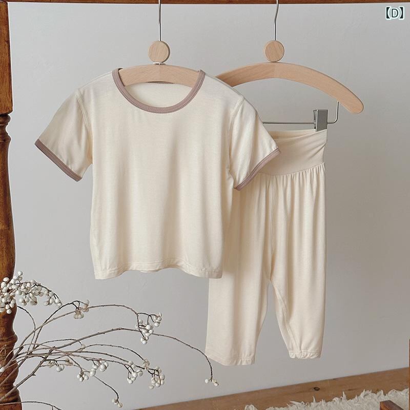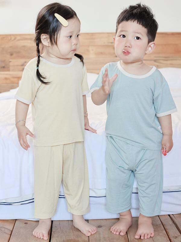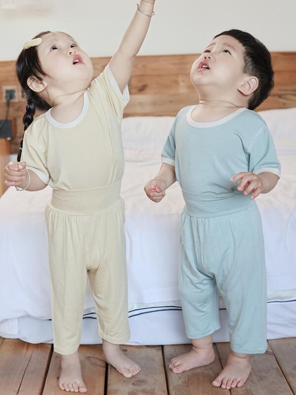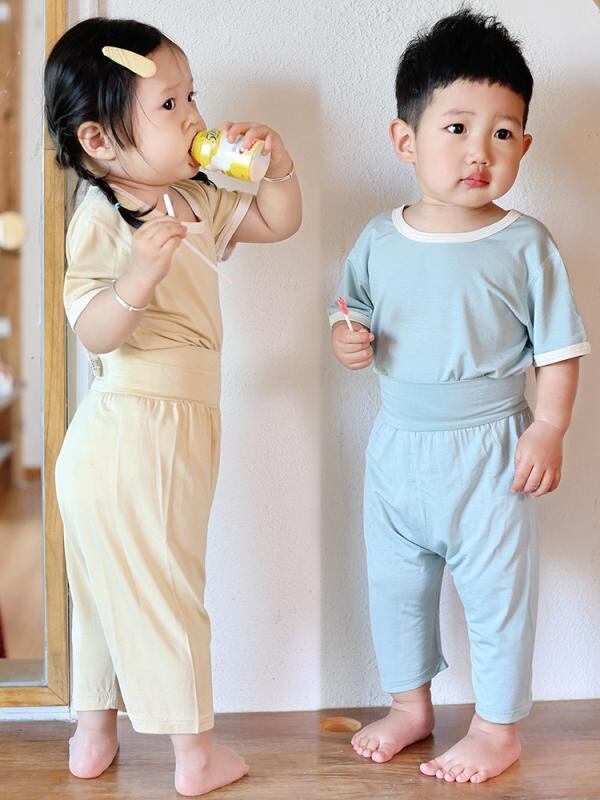 パジャマ キッズ ルームウェア セットアップ 半袖 七分丈パンツ 薄手 接触冷感 抗菌 ハイウエスト 腹巻付き 部屋着 寝巻き 普段使い 肌に優しい 韓国風 かわいい 夏