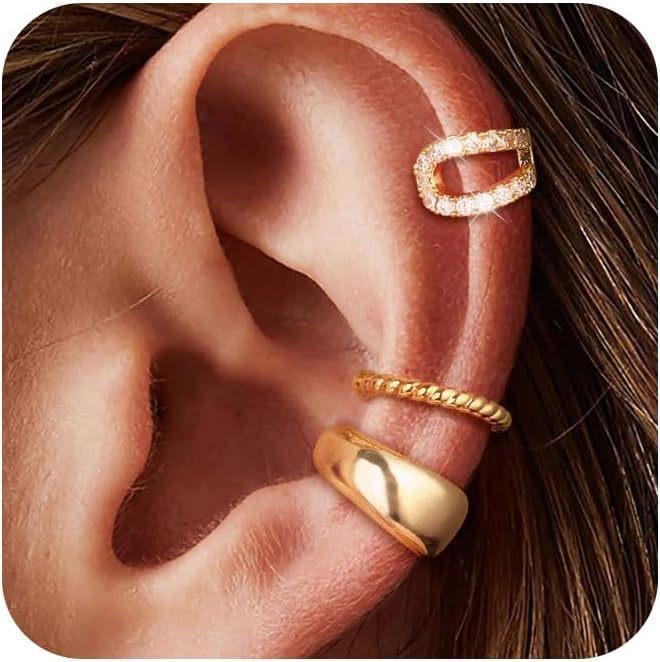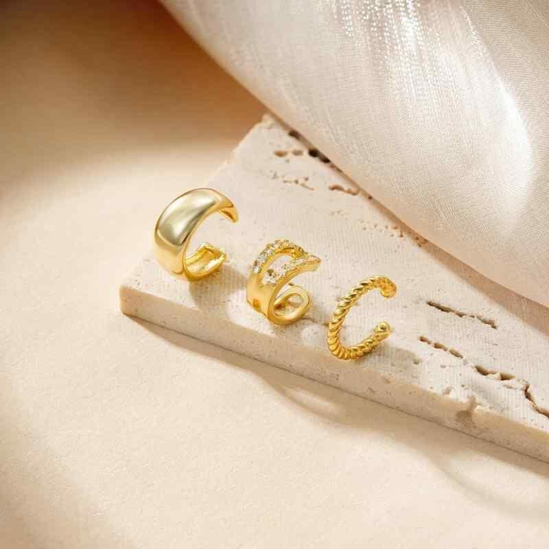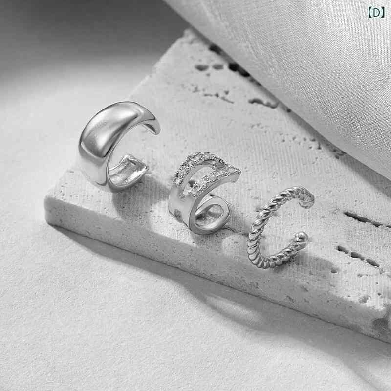 イヤーカフ レディース ラインストーン 金属製 光沢 3点セット U字型デザイン 個性派 上品 シンプル オフィス カジュアル ゴールド シルバー