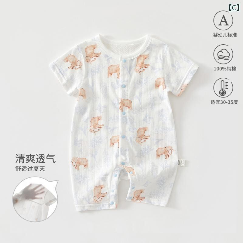 ロンパース ベビー 男女兼用 夏用 薄手 綿100% コットン メッシュ 通気性 快適 吸湿速乾 A型基準 安全 肌触り良い フラットシーム 部屋着 普段使い カジュアル