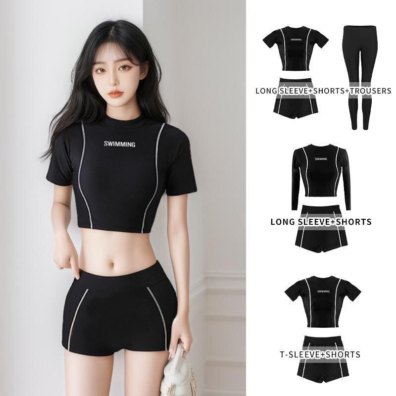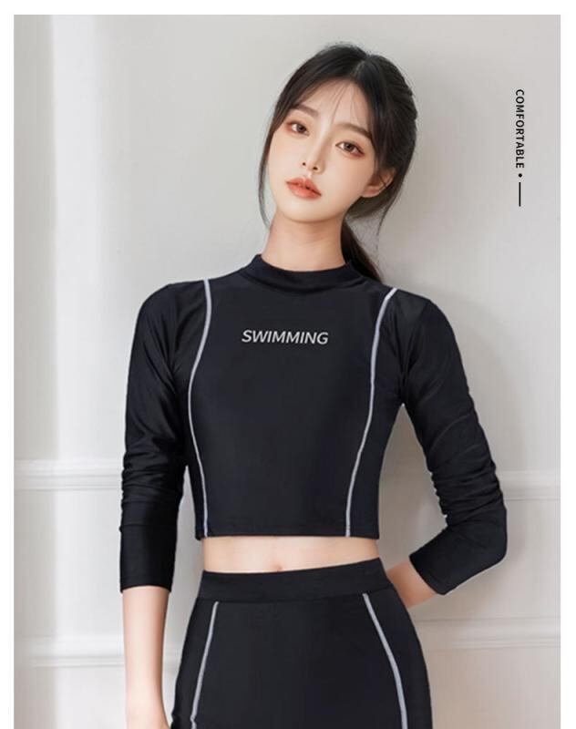 水着 レディース セパレート UVカット 速乾 長袖 ラッシュガード ロングパンツ 体型カバー シュノーケリング サーフィン マリンスポーツ スポーツウェア ブラック 胸パッド付き