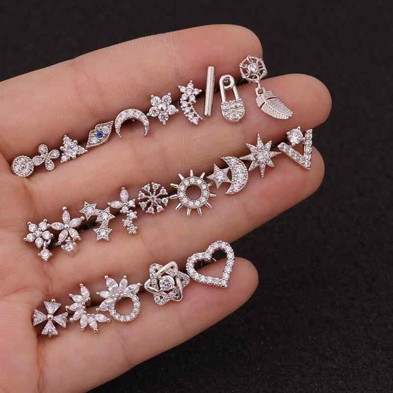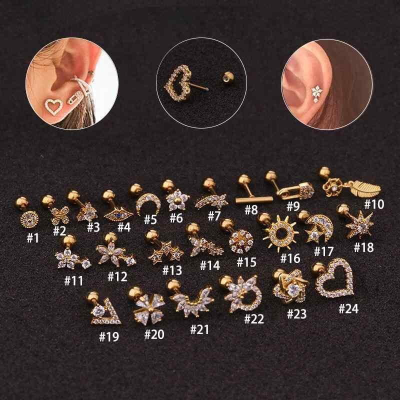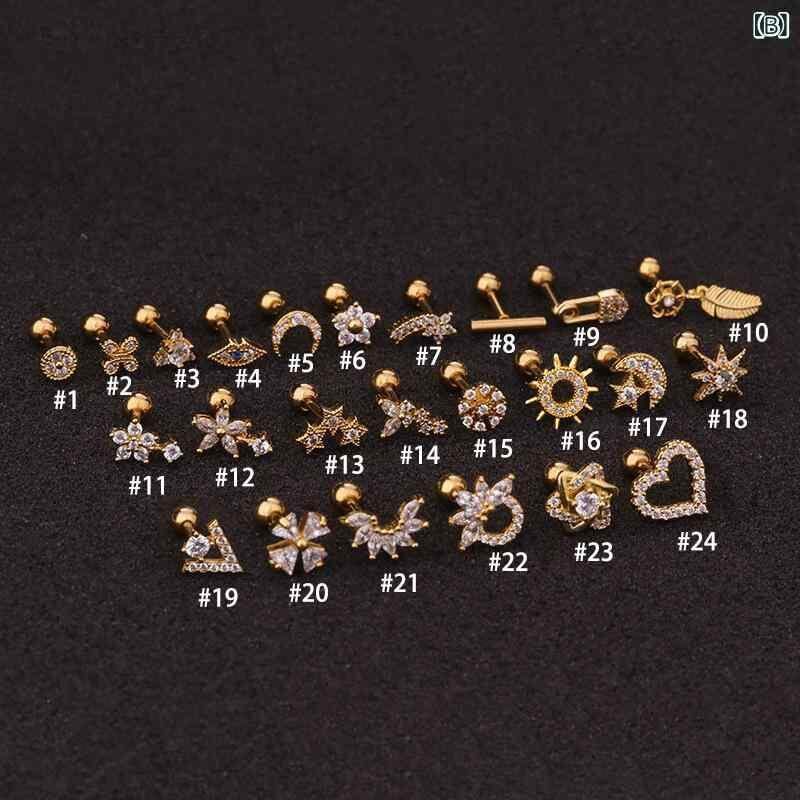軟骨ピアス レディース 花モチーフ キュービックジルコニア ステンレス ネジ式 バーベル カジュアル 普段使い シルバー ゴールド