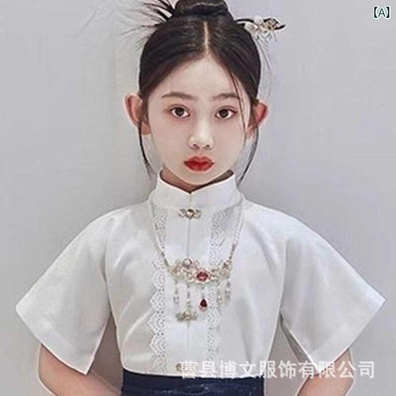 セットアップ 女の子 キッズ 子供 中華風 伝統衣装 民族衣装 改良版 馬面スカート ロングスカート 雲肩 半袖トップス 刺繍 ポリエステル 夏用 普段使い イベント 衣装 かわいい