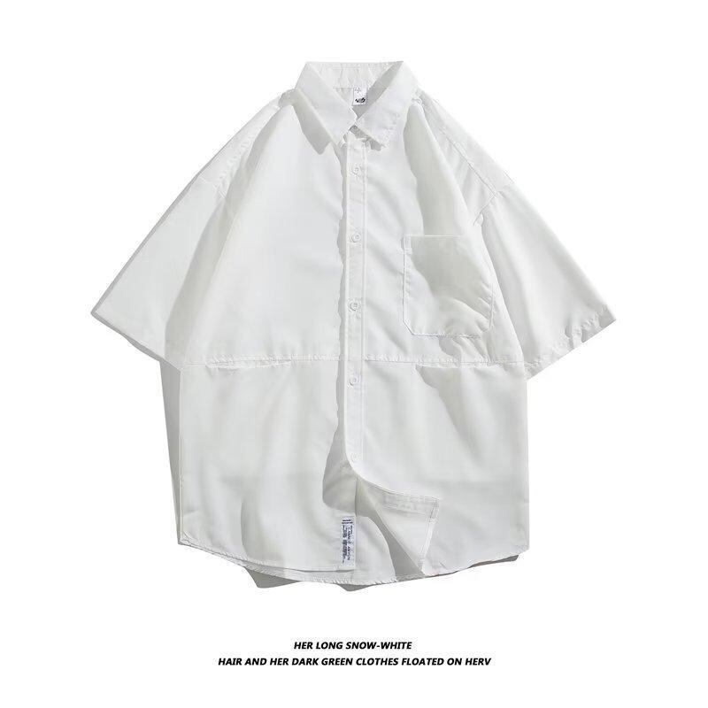 シャツ メンズ 半袖 五分袖 夏 薄手 軽量 ゆったり ビッグシルエット ルーズ カジュアル ストリートスタイル ポリエステル 襟付き 無地 トップス 羽織り 着回し 普段使い ホワイト ブラック ネイビー カーキ