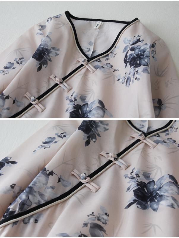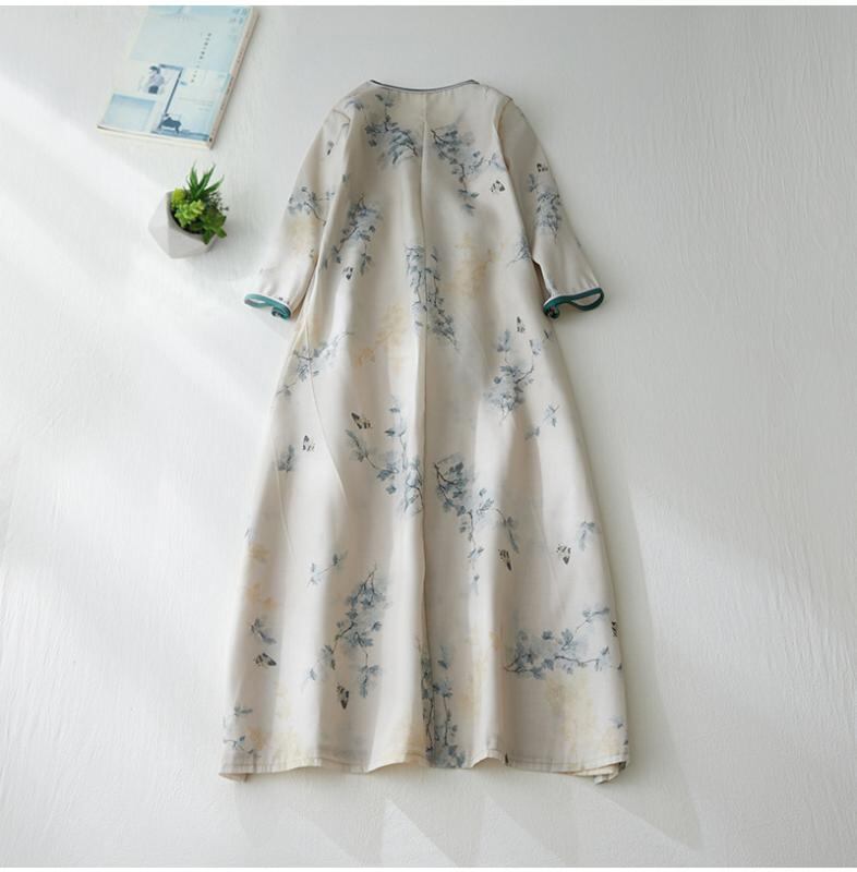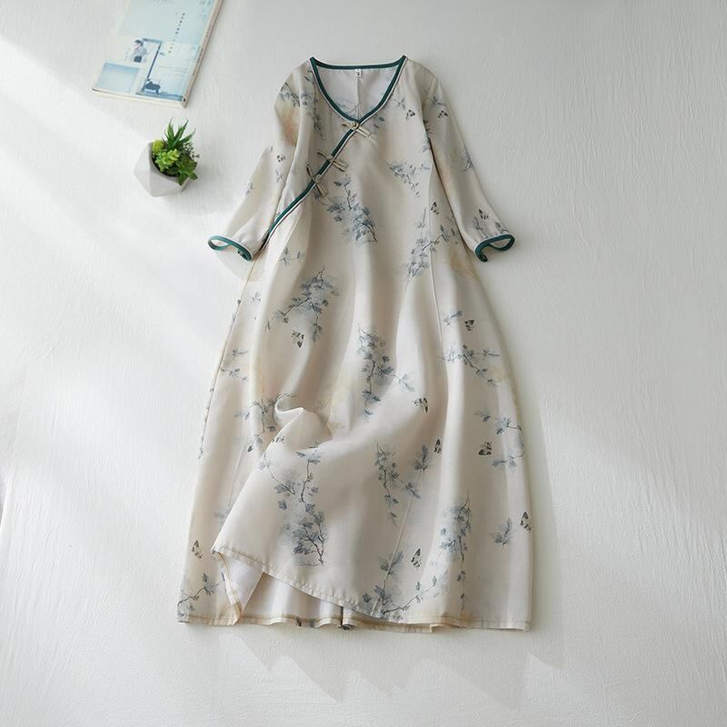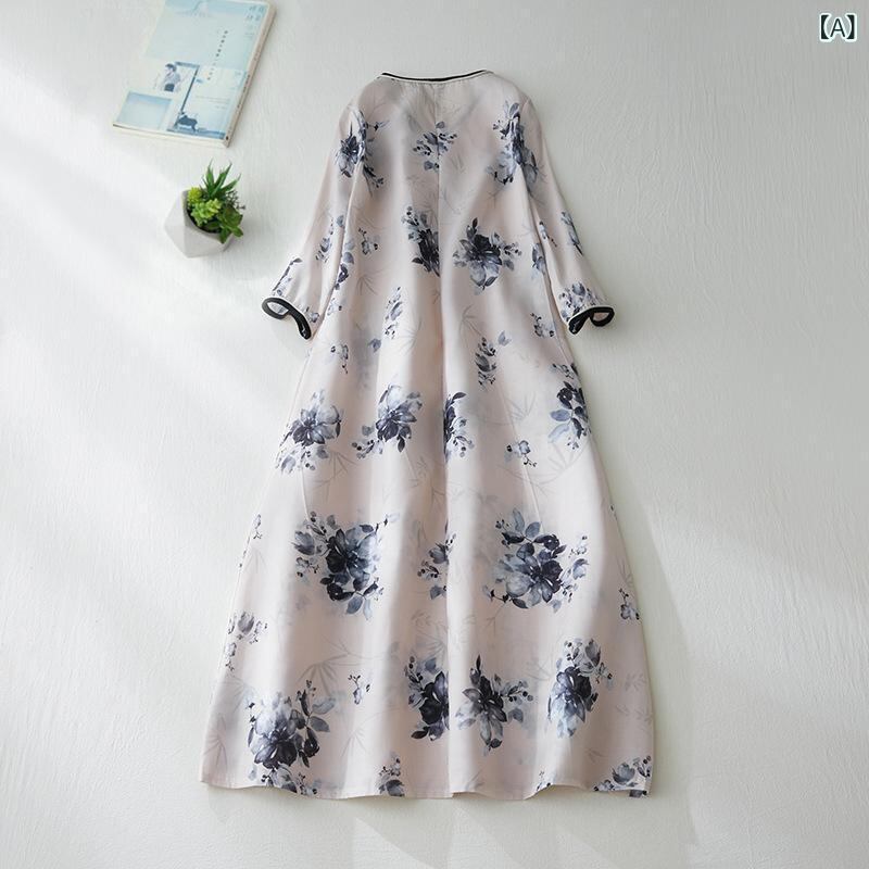 ワンピース 大きいサイズ レディース チャイナドレス 改良版 ロング丈 Aライン ゆったり 体型カバー 中国風 民族風 禅風 茶服 上品 エレガント レトロ 春 夏 普段使い