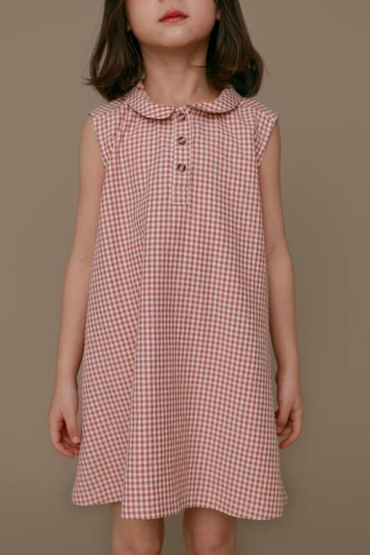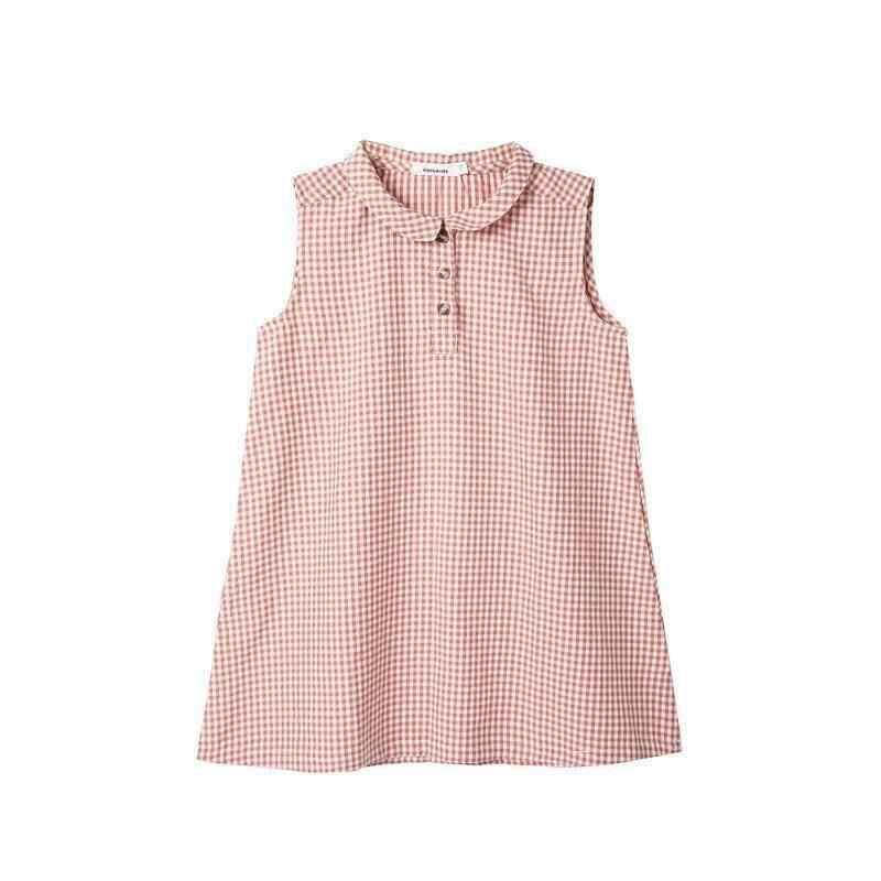 ワンピース 女の子 子供服 レトロ 韓国風 ゆったり リラックスフィット チェック柄 Aライン ノースリーブ コットン タンクトップ風 夏用 カジュアル かわいい ピンク
