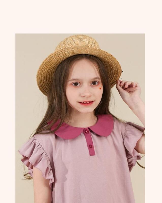 ワンピース 女の子 ガールズ 夏 ポロ 襟付き フリル袖 Aライン コットン素材 配色デザイン ミディ丈 膝下丈 カジュアル フェミニン ピンクパープル スイート かわいい 通気性 お出かけ 普段着