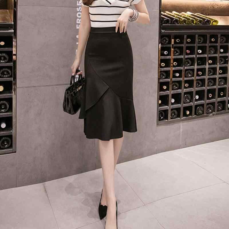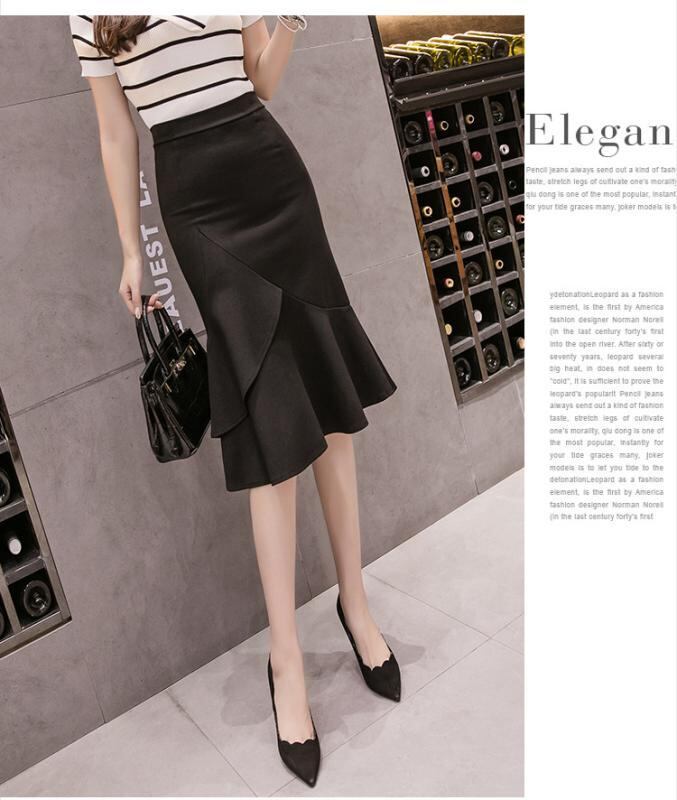 スカート レディース 大きいサイズ タイトスカート マーメイドスカート ミニスカート ショート丈 アシンメトリー 黒 ブラック 無地 オフィス ビジネス 通勤 上品 エレガント 微ストレッチ 伸縮性 ポリエステル フリル メロウ加工