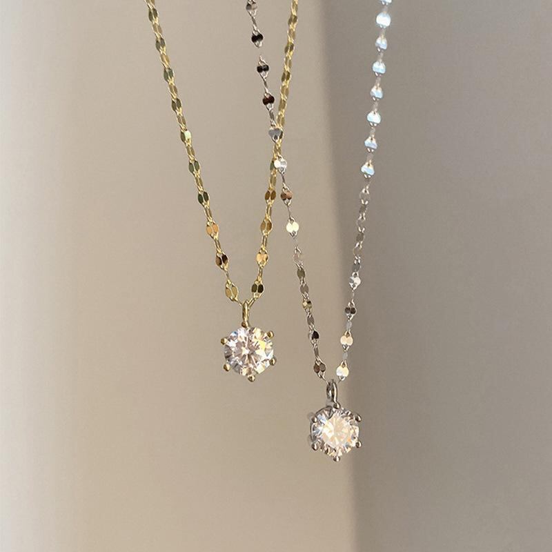 ネックレス レディース 一粒ラインストーン 鎖骨チェーン ショートネックレス シンプル ミニマル 上品 エレガント 繊細 高見え デザイン性 ゴールド シルバー メタル デイリーユース 普段使い オフィス フォーマル