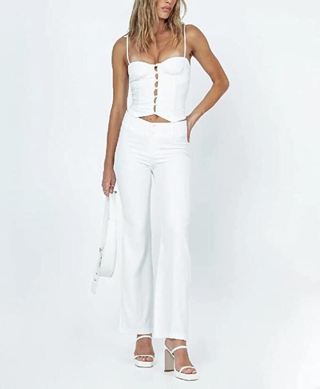 タンクトップ レディース セクシー スリムフィット インナー ブラトップ ボタンストラップ スクエアネック ショート丈 ストレッチ リブ 伸縮性 コットン