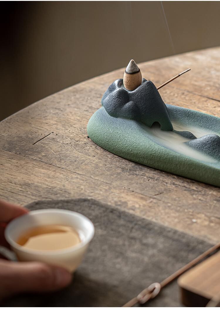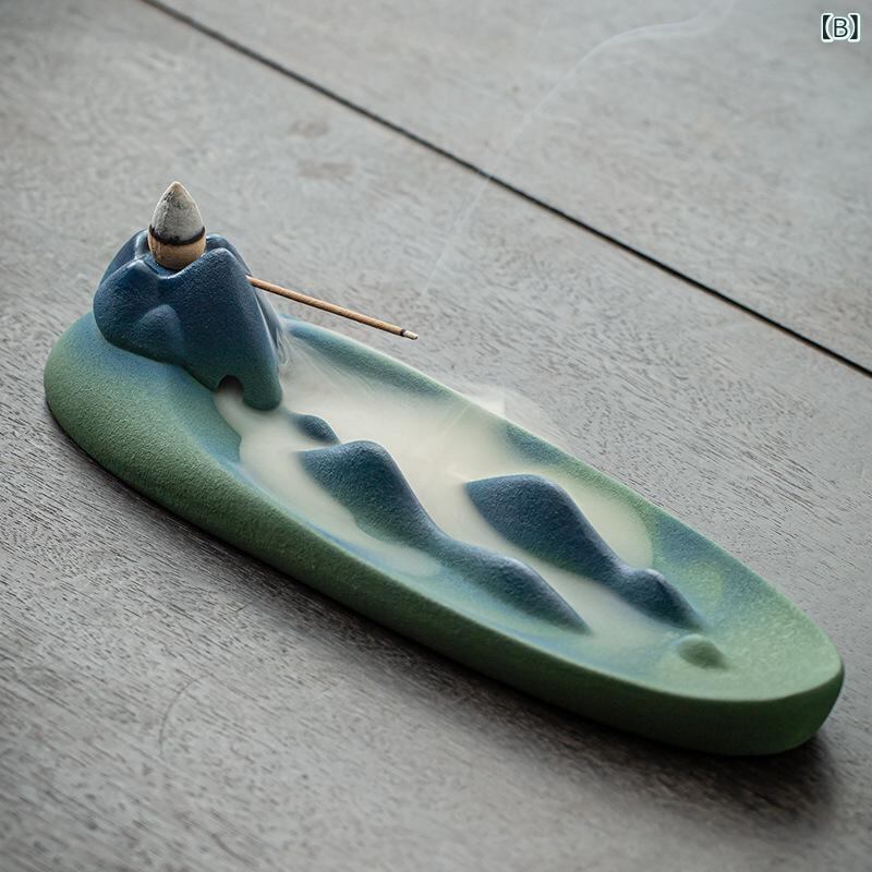 香炉 逆流式 枯山水 陶器製 線香立て 横置き 室内用 リビング 書斎 自宅用 おしゃれ 和モダン インテリア 置物 オブジェ 瞑想 癒し リラックス 風水
