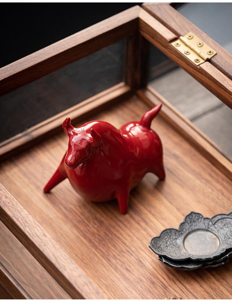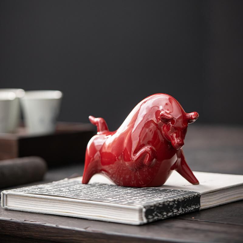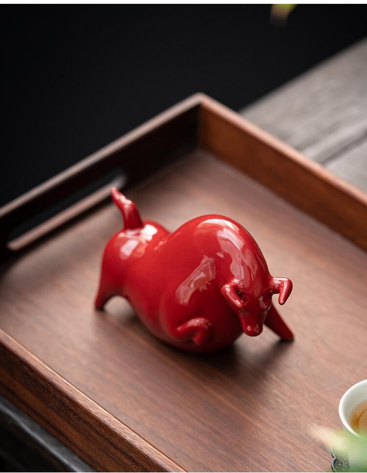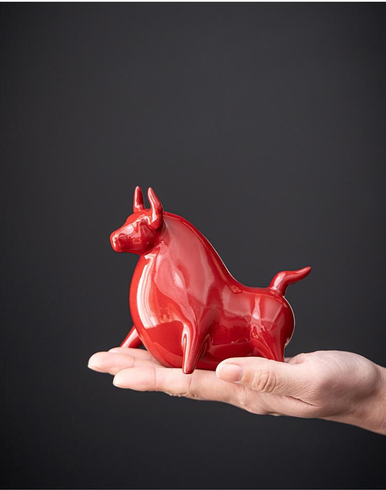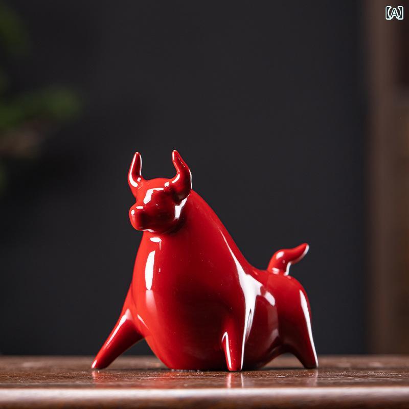 オブジェ 彩絵陶器 赤色 牛 干支 招財 ラッキーアイテム リビング オフィス 卓上 インテリア 飾り 縁起物 開運 飛躍 繁栄 贈り物 ギフト 開店祝い 新築祝い ビジネスギフト