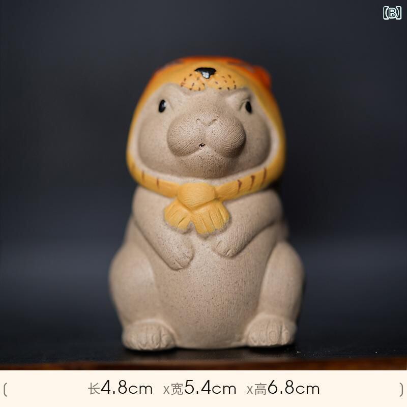 うさぎ 置物 かわいい 紫砂陶器 ミニチュア オブジェ ユニーク 茶器飾り 茶寵 蓋置き 茶席小物 精巧 高級感 インテリア