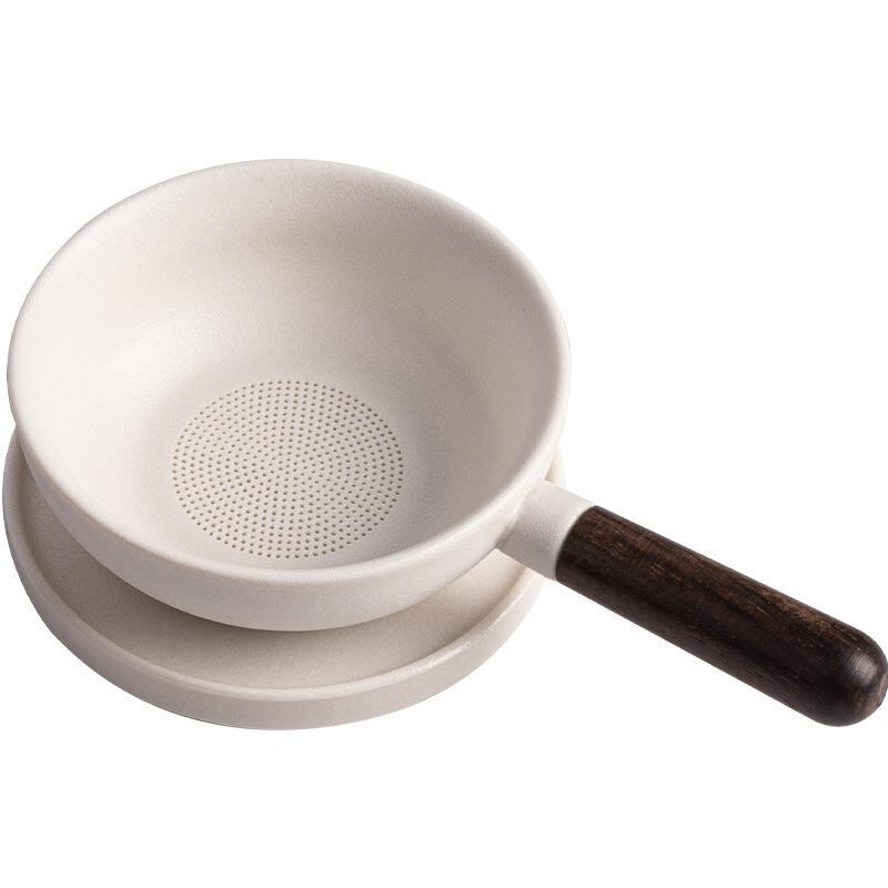 茶こし フライパン型 陶器製 一体型 ユニーク おしゃれ 茶葉フィルター 茶漉し 茶器 茶道具 ティータイム 来客用 白 黒