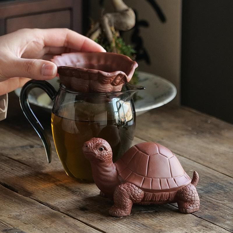 茶こし 亀型 茶器 茶漉し 紫砂陶器 一体型 かわいい 茶ペット 長寿亀 茶葉分離フィルター 功夫茶道具 中華風 茶道 茶用品 癒し 置物 朱泥 紫泥