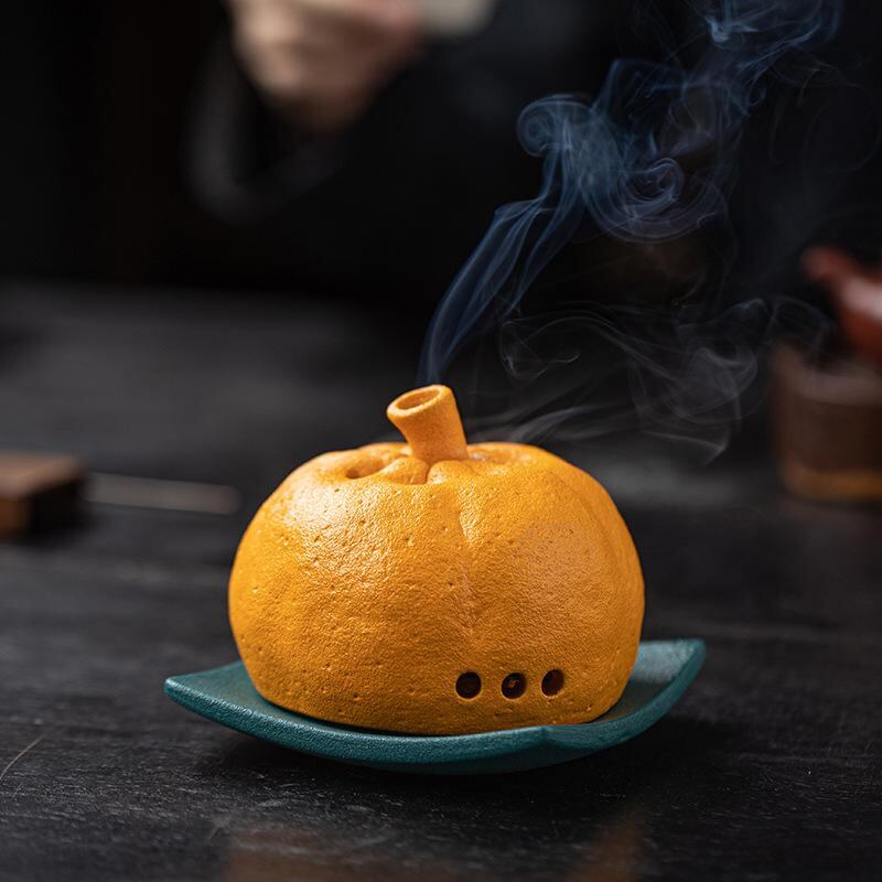 香炉 お香立て 陶器製 みかん型 おしゃれ 室内用 リビング 玄関 渦巻き線香 沈香 檀香 茶道用 和風 インテリア 置物 インセンスホルダー