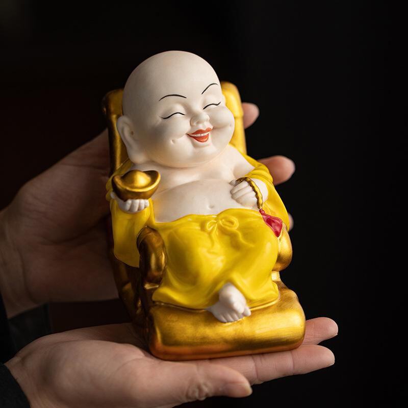 仏像 弥勒菩薩 置物 中国風 大腹 笑い仏 陶器製 手工芸品 リビング 茶室 書斎 デスク テーブルサイド 装飾 インテリア オブジェ 開運 縁起物 福々しい ユニーク かわいい