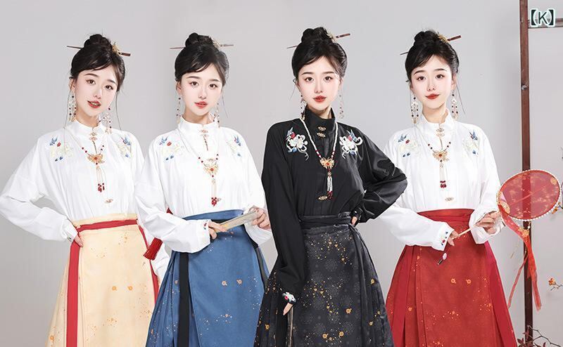 漢服 レディース 明制 対襟 立ち襟 トップス 馬面スカート セットアップ 刺繍 普段使い フォーマル ポリエステル素材 絞り染め 結び紐 レトロ カジュアルスタイル