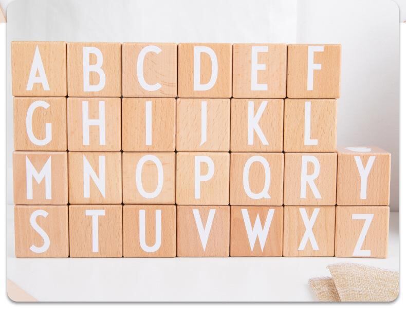 積み木 子供 キッズ 幼児 天然木 無塗装 知育玩具 数字 文字 図形 学習トイ 早期教育 手と目の協調 空間認識 発育 ブナ材 木製 32ピース 知育ブロック セット